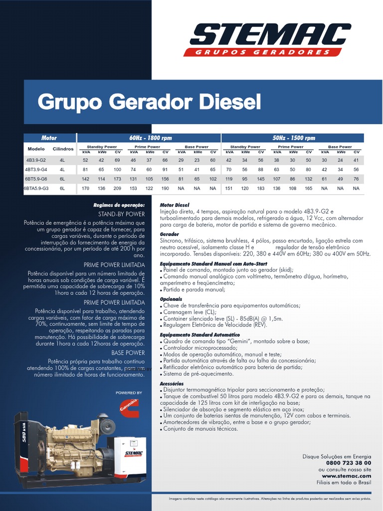 Injeo direta, 4 tempos, aspirao natural para o modelo 4B3.9-G2 e