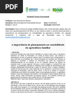 e ações administrativas em organizações rurais. E de acordo com Andrade (1985), ao