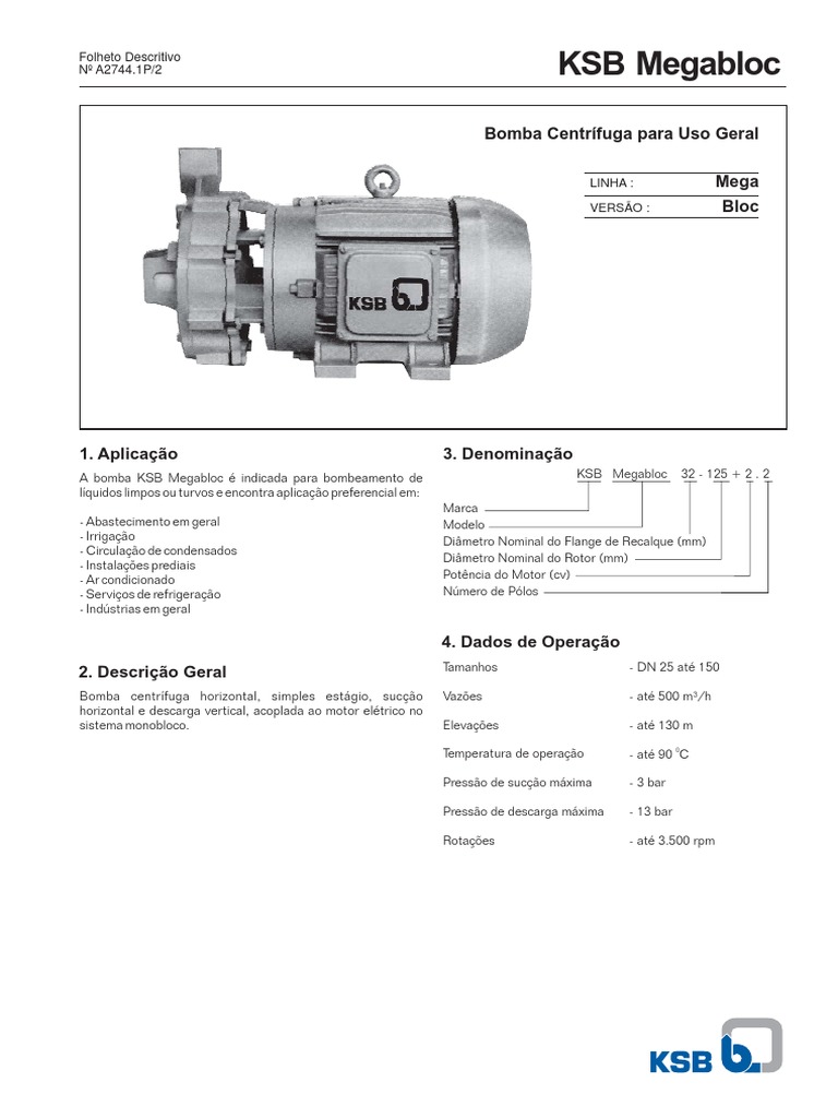 7.1. KSB Megabloc com motores at 15 CV II Plos e at 40 CV IV Plos