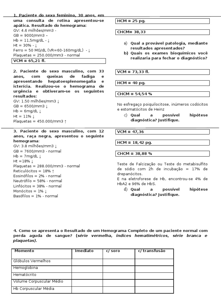 3. Paciente do sexo masculino, com 12 VCM = 47,36