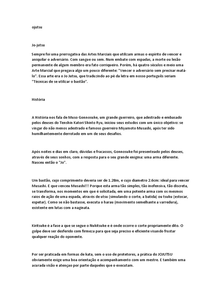 Arte Marcial que pregava algo um pouco diferente: "Vencer o adversrio sem precisar matlo". Essa arte era o Jo Jutsu, que traduzindo ao p da letra em nosso portugus seriam