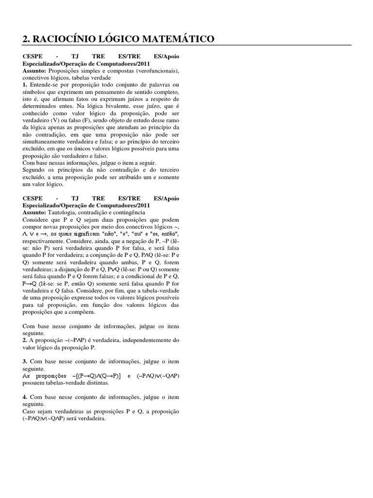 respectivamente. Considere, ainda, que a negao de P, ~P (lse: no P) ser verdadeira quando P for falsa, e ser falsa