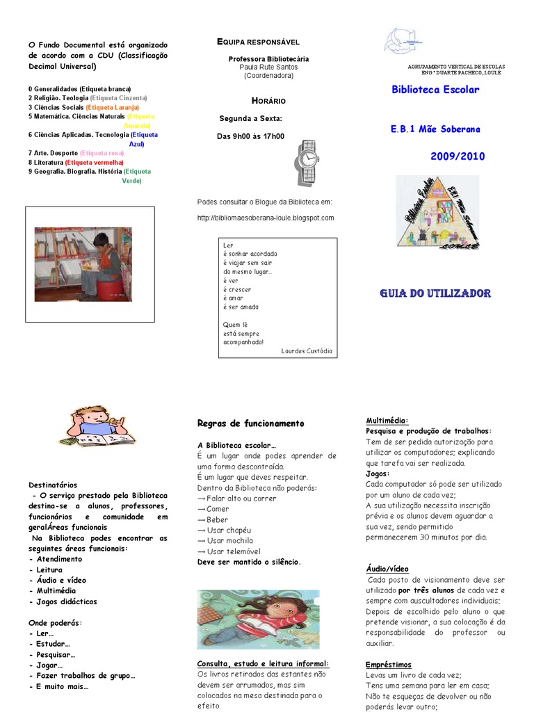 Destinatários - O serviço prestado pela Biblioteca destina-se a alunos, professores,