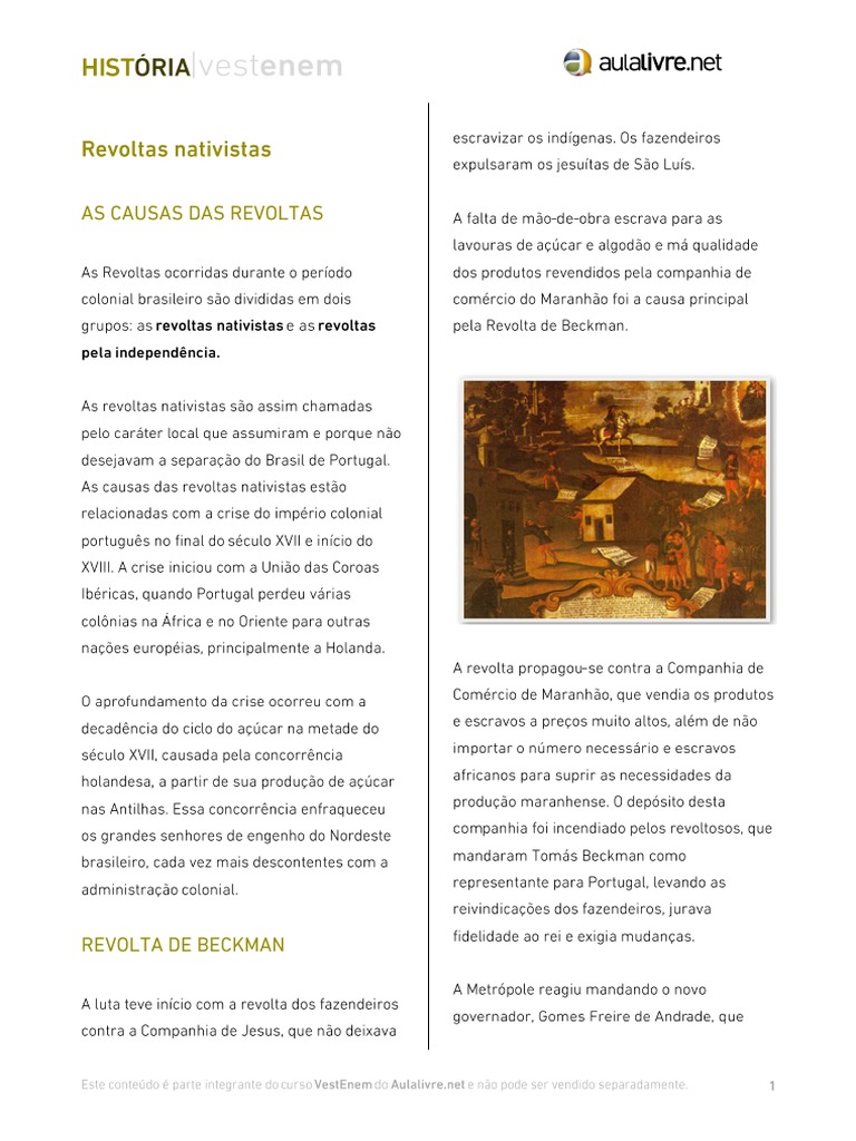 grupos: as revoltas nativistase asrevoltas