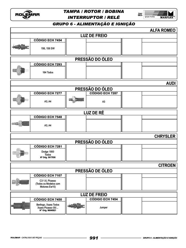 Bravo 1.9 95/95 Brava ELX/SX/ELX 1.6 16v. MPI Gas. 00/02 Punto IMP 1.4/1.7 94/94 Tempra IMP 1.9 90/90 Fiorino, Uno 1.0/1.3/1.5/1.6