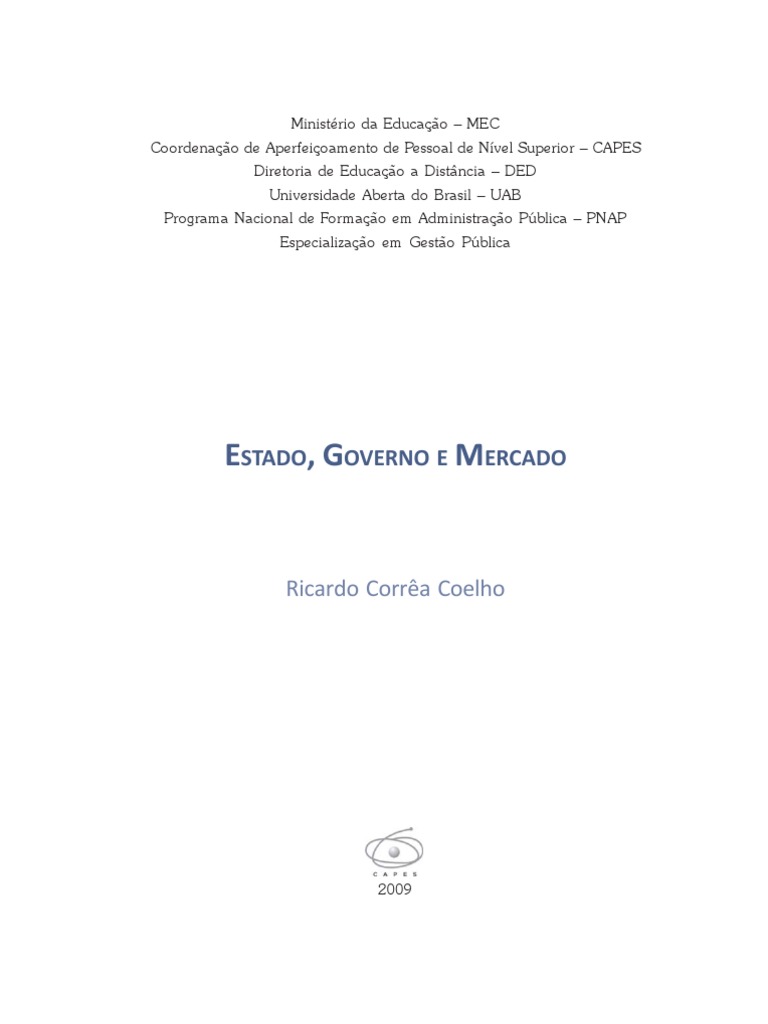 Estado, governo e mercado / Ricardo Corrêa Coelho. – Florianópolis : Departamento de