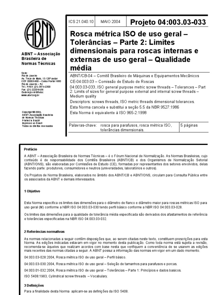 Tel.: PABX (21) 3974-2300 04:003.03-033, ISO general purpose metric screw threads – Tolerances – Part