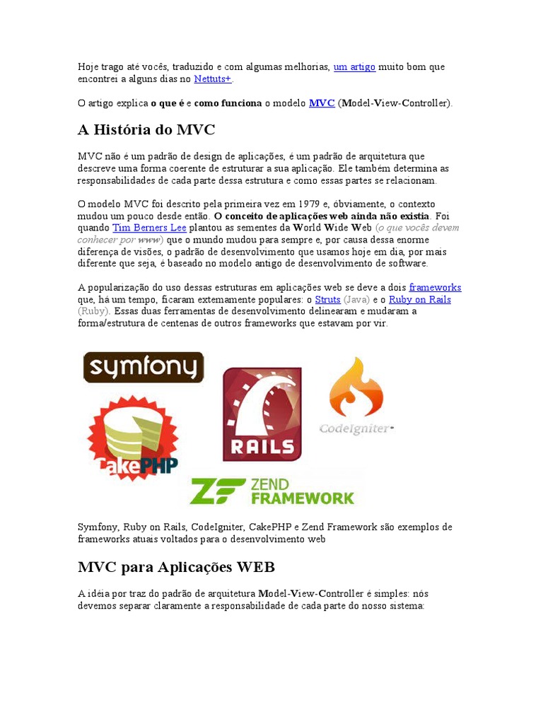 que, há um tempo, ficaram extemamente populares: o Struts (Java) e o Ruby on Rails
