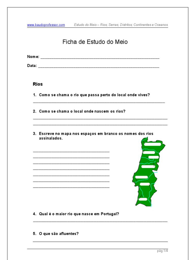 com Estudo do Meio – Rios; Serras; Distritos; Continentes e Oceanos