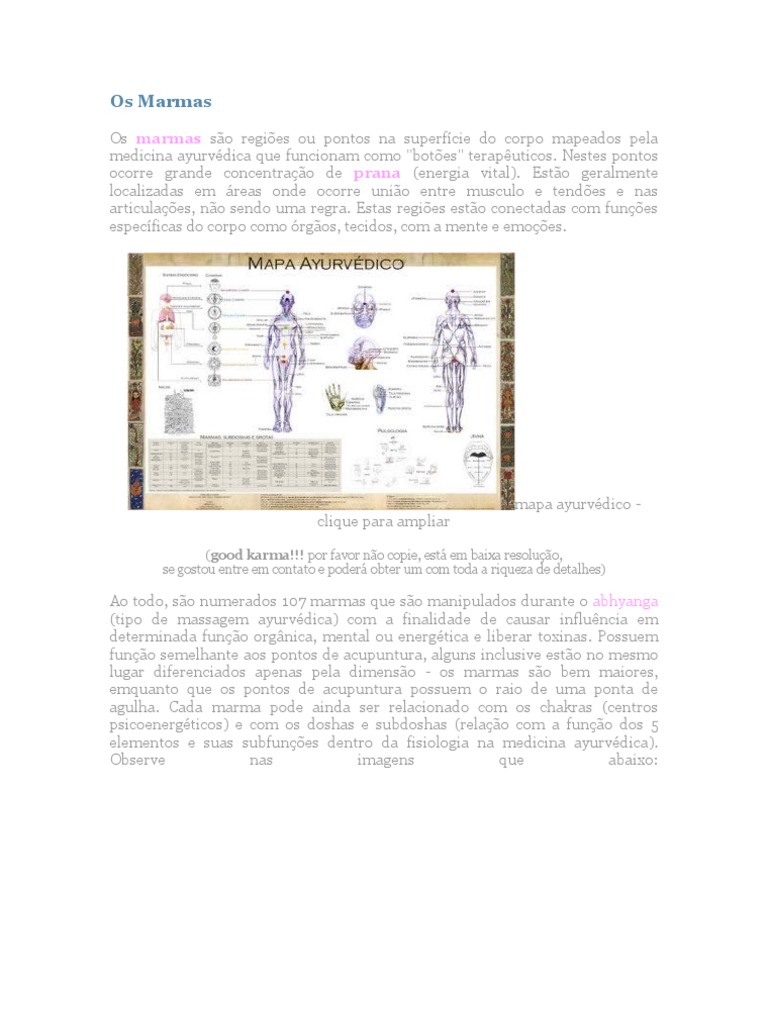 medicina ayurvédica que funcionam como "botões" terapêuticos. Nestes pontos