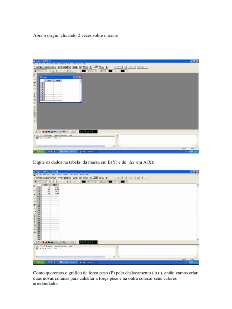 Agora clique sobre a tabela 2 (data 2): e digite os dados referentes a segunda mola para