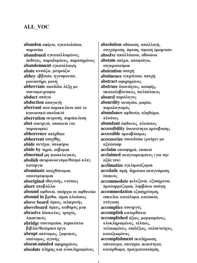 acquire αποκτώ, παίρνω admonition επίπληξη, νουθεσία