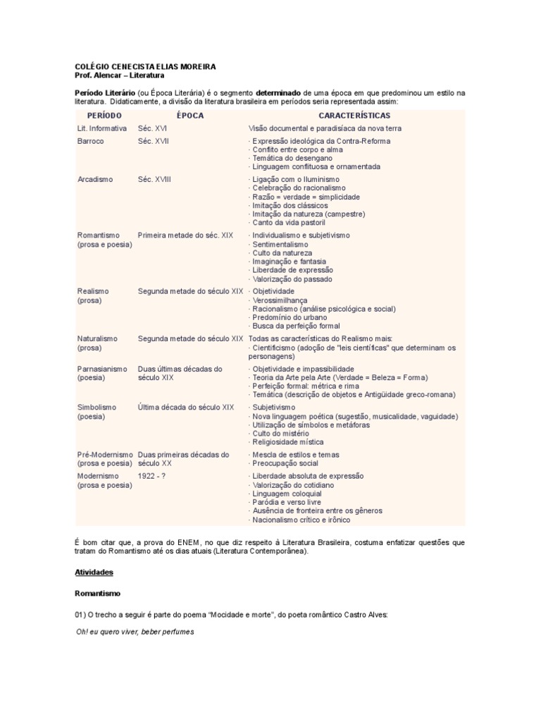 É bom citar que, a prova do ENEM, no que diz respeito à Literatura Brasileira, costuma enfatizar questões que