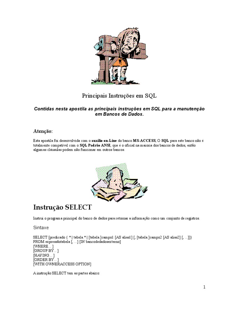Esta apostila foi desenvolvida com o auxílio on-Line do banco MS-ACCESS, O SQL para este banco não é