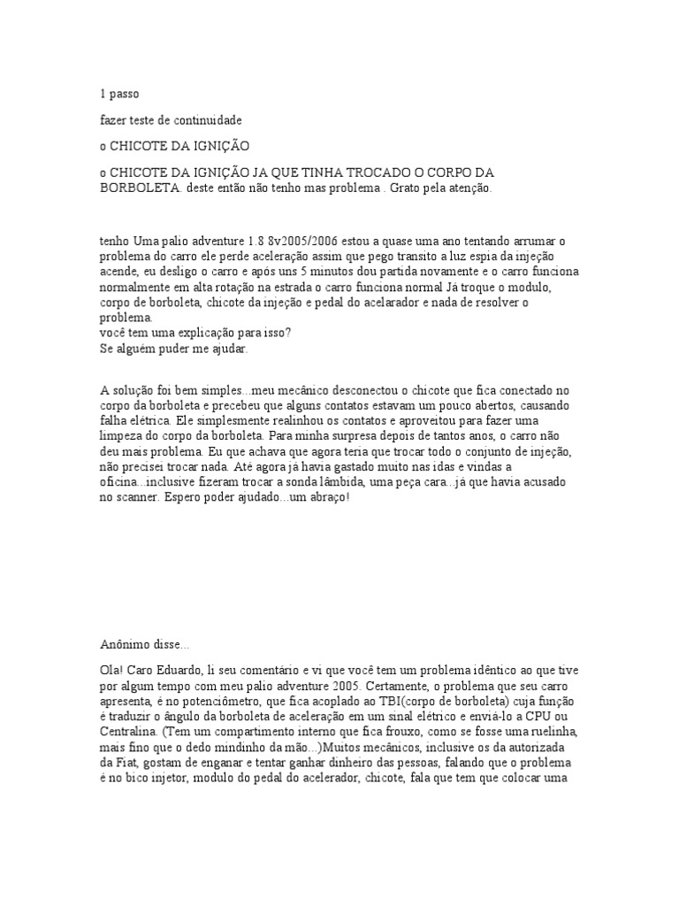 corpo de borboleta, chicote da injeção e pedal do acelarador e nada de resolver o
