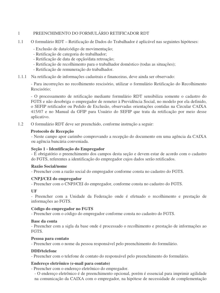 1 PREENCHIMENTO DO FORMULÁRIO RETIFICADOR RDT