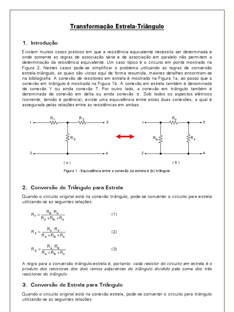 (corrente, tensão e potência), existe uma equivalência entre estas duas conexões, a qual é