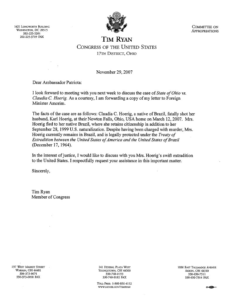 2007-11-29 Tim Ryan to Brazilian Ambassador Patriota
