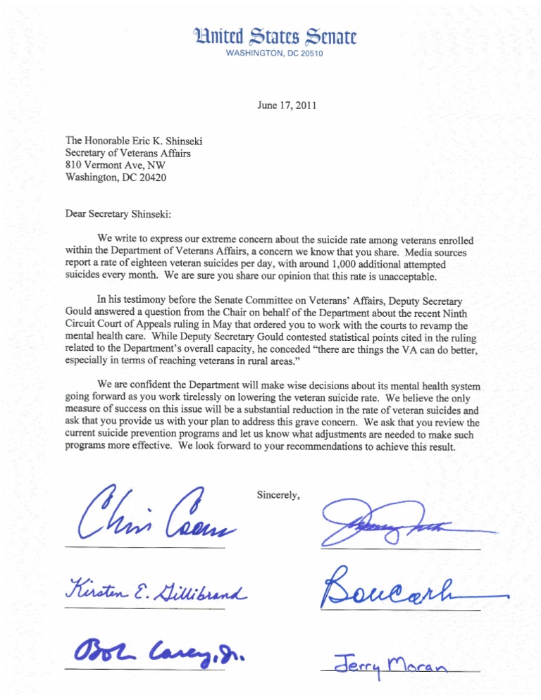 Letter on Veterans' Suicides