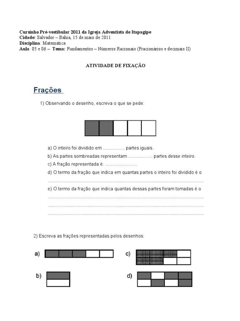 Aula: 05 e 06 Tema: Fundamentos Nmeros Racionais (Fracionrios e decimais II)