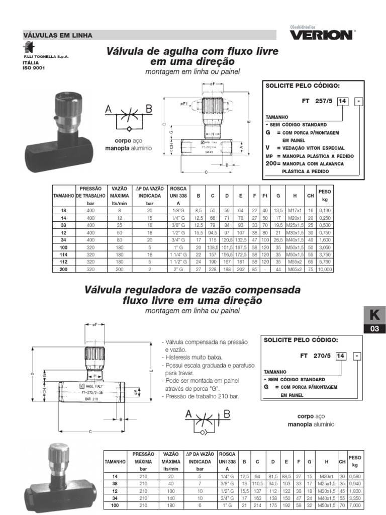 Vlvula de agulha com fluxo livre em uma direo