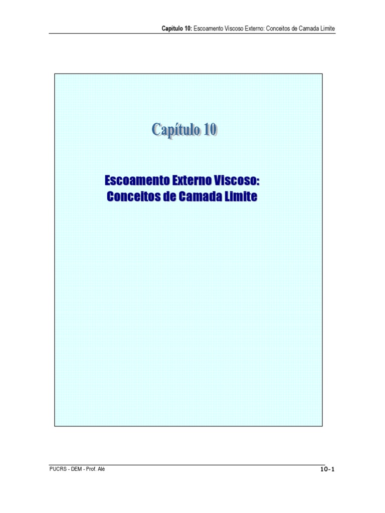 Captulo 10: Escoamento Viscoso Externo: Conceitos de Camada Limite