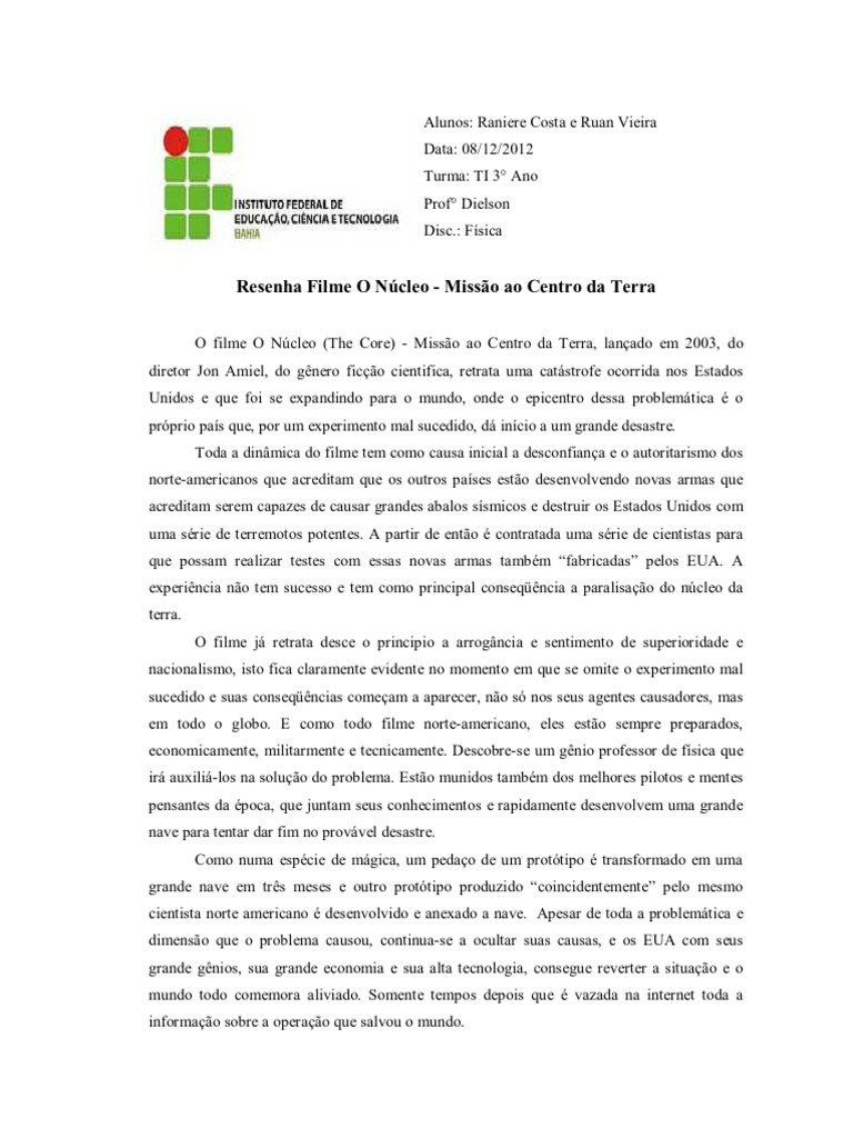 Resenha Filme O Ncleo - Misso ao Centro da Terra