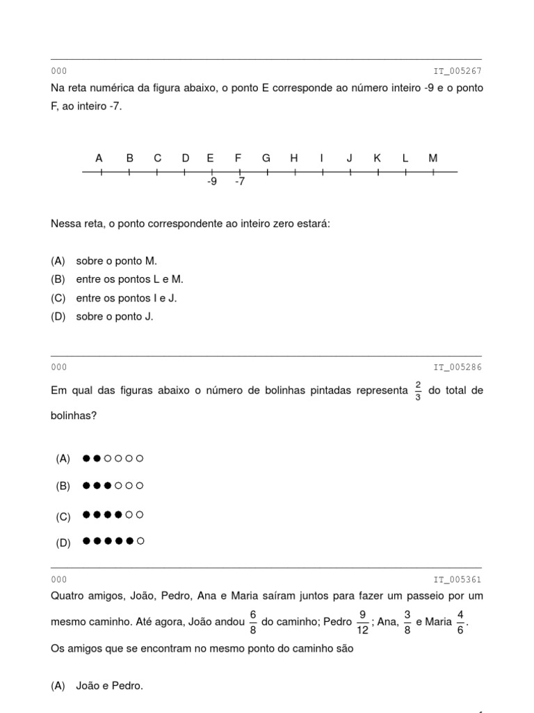Na reta numrica da figura abaixo, o ponto E corresponde ao nmero inteiro -9 e o ponto