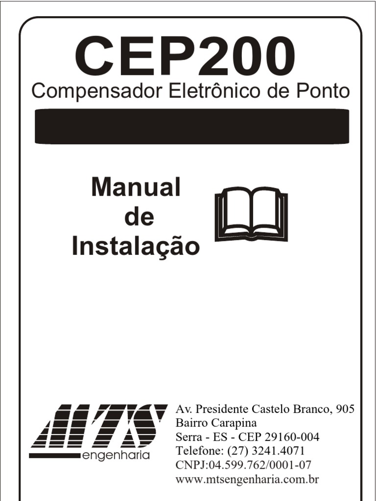A MTS Engenharia garante o equipamento CEP200 contra defeitos de fabricao. Se durante o periodo de garantia, o equipamento apresentar-se defeituoso, dever ser encaminhado para a MTS Engenharia para avaliao e reparao, juntamente com o manual devidamente preenchido com carimbo do instalador. As despesas de transporte ficam a cargo do solicitante
