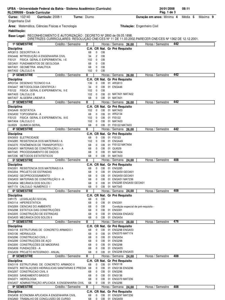 24/01/2008 Pg. 1 de 3 Durao em anos: Mnima 4 Titulao: Engenheiro Civil