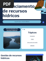 Principais fundamentos legais: a) b) c) A gua um bem de domnio pblico; A gua um recurso natural limitado, dotado de valor econmico; A gesto dos recursos hdricos deve sempre proporcionar o uso mltiplo das guas. Em situaes de escassez, o uso prioritrio dos recursos hdricos o consumo humano e a dessedentao de animais; d) A Bacia Hidrogrfica a unidade territorial para implementao da Poltica Nacional de Recursos Hdricos e a atuao do Sistema Nacional de Gerenciamento de Recursos Hdricos; e) A gesto dos recursos hdricos deve ser descentralizada e contar com a participao do Poder Pblico, dos usurios e das comunidades. Objetivos I Assegurar atual e s futuras geraes a necessria disponibilidade de gua, em padres de qualidade adequados aos respectivos usos; II A utilizao racional e a integrada dos recursos hdricos, incluindo o transporte aquavirio, com vistas ao desenvolvimento sustentvel; III A preveno e a defesa contra eventos hidrolgicos crticos de origem natural ou decorrentes do uso inadequado dos recursos naturais (catstrofes como enchentes, inundaes etc.). Diretrizes I Gesto sistemtica dos recursos hdricos, sem dissociao dos aspectos de quantidade e qualidade; II Adequao da gesto de recursos hdricos s diversidades fsicas, biticas, demogrficas, econmicas, sociais e culturais das diversas regies do pas; III Integrao da gesto de recursos hdricos com a gesto ambiental; IV Articulao do planejamento de recursos hdricos com o dos setores usurios e com os planejamentos regional, estadual e nacional; V Articulao da gesto de recursos hdricos com a do uso do solo; VI Integrao da gesto das bacias hidrogrficas com a dos sistemas estuarinos e zonas costeiras.