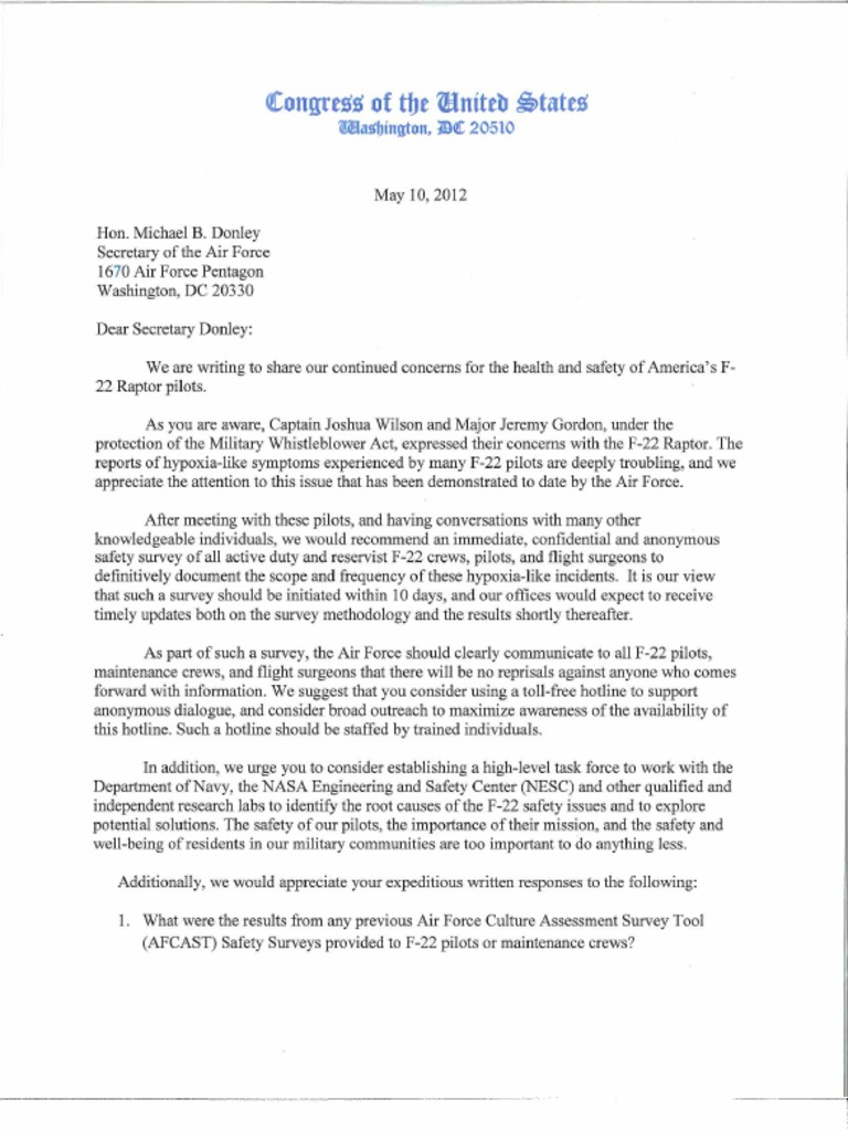 Warner Kinzinger letter to Sec of Air Force