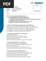 Instrues para realizao da prova: 1 - Leia atentamente os enunciados da prova 2 - As questes podem ser respondidas a lpis ou a tinta 3 - O valor total da prova de 7 pontos 3 - Cada questo vale um ponto, desta forma, necessrio resolver apenas 7 das 8 questes 4 - Caso o aluno resolva as 8 questes, aquela com menor nota ser descartada