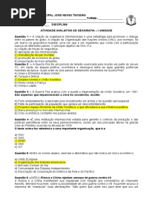 Qual o efeito que a globalização teve na política internacional? A ONU ainda é relevante? Qual é a relação entre a mídia e a política externa? Encontre as respostas para essas perguntas e muito mais na ampla coleção de PDFs sobre relações internacionais do Scribd. Estudantes de ciência política, professores e aqueles com interesse geral em assuntos globais vão apreciar explorar documentos sobre ação humanitária, cibersegurança internacional, diplomacia e muito mais. Aprenda sobre alianças e conflitos importantes — como as Guerras Mundiais I e II, a Guerra do Iraque e o Genocídio em Ruanda — entre vários países ao longo da história. Seja para escrever um ensaio sobre relações internacionais ou para entender os eventos que moldaram o funcionamento da política mundial atualmente, você se tornará um pensador global mais completo com a assinatura do Scribd.