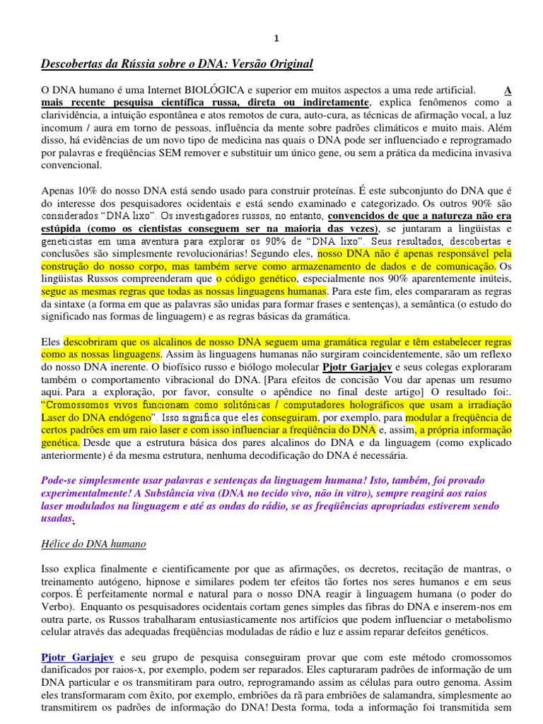 Descobertas da Rssia sobre o DNA: Verso Original