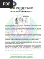 onde no se perceba o fenmeno; e o segundo - o de UMBANDA ECLTICA SUPERIOR - recebe e trabalha a portas abertas, geralmente de p, mas funciona em qualquer posio que seja necessria, ao objetivo da Caridade, deitado, de p, sentado, acocorado, etc.; e tanto trabalha na mesa como no chamado "terreiro" (nome aceito e Simblico, tambm adotado apenas, pela impresso de humildade e pobreza honrada, que o vocbulo inspira), de p ou sentado num tamborete, sem nenhum vexame ou incompatibilidade, contanto que seja para fins elevados de servir Obra da grande Oficina do Divino Mestre A sua mediunidade tambm se exerce e se equilibra dentro do mesmo cdigo rgido de moral e de permanente atividade construtiva de trabalho intenso, como nenhum outro mdium, transformando-se no tempo em verdadeiro Sacerdote da Mediunidade, vivendo mais dedicado vida espiritual, do que vida material. Nunca dispe, o verdadeiro mdium de sbado, 18 de dezembro de 2010 Mediunidade A Mediunidade comum ao homem, desde os seus primeiros sculos e geraes e antes mesmo do nascimento da primeira religio no mundo!