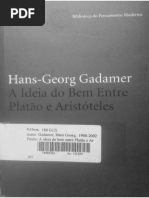 12. As ltimas linhas do segundo livro dos Segundos Analticos poderiam fazer pensar que, para Aristteles, o nvel mais alto de conscincia coincida com uma sorte de intuio intelectual (100b5-17). Contra essa interpretao do passo, reagiu com vigor Enrico Berti (cf., por exemplo, Le ragioni di Aristotele, Roma-Bari, 1989, pp. 11-18 [N.T.: traduo brasileira, As razes de Aristteles. Trad. Dion D. Macedo. So Paulo: Loyola, 2002]). Sobre esse tema existe um interessante estudo monogrfico de V. Kal, On Intuition and Discursive Reasoning in Aristotle, Leiden, 1988. 13. Cf., sobretudo, os ensaios traduzidos em italiano e reunidos em dois volumes, Studi Platonici I e II (Casale Monferrato, 1983 e 1984, respectivamente). Sobre Gadamer e Plato, ver, ento, o timo volume de F. Renaud, significativo j no ttulo, Die Resokratisierung Platons. Die platonische Hermeneutik HansGeorg Gadamers, Sankt Augustin, 1999. 14. Platone. Alla ricerca della sapienza segreta, Milo, 1998, pp. 313-331; Gadamer, un grande platonico del XX secolo, em Incontri con Hans-Georg Gadamer (ed. italiana, por G. Girgenti, a partir do alemo Begegnungen mit Hans-Georg Gadamer, Stuttgart, 2000), Milo, 2000, pp. 74-82; e na Introduo recente reimpresso, com o texto alemo na capa, da traduo de Verit e Metodo, editada por G. Vattimo (Milo, 2001). 15. Discutimos criticamente a interpretao de Plato proposta pelos estudiosos da escola de Tbingen-Milo nos j citados Scrivere nellanima e Oralit e scrittura in Platone.