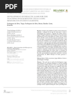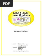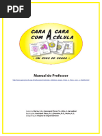 1. Sugere-se que a primeira partida seja jogada apenas para compreenso das regras e esclarecimentos das dvidas; 2. As duas equipes de estudantes devem se colocar frente a frente em uma mesa ou superfcie de tamanho suficiente para a colocao das 15 cartas do baralho; 3. cada jogador/equipe fornecido um baralho completo que deve ser alinhado em p, com as figuras viradas para a equipe; 4. O professor esclarece aos alunos as regras do jogo, inclusive o tipo de pergunta que pode ser feita. As regras que norteiam as perguntas a serem formuladas pelos jogadores devem ser construdas coletivamente envolvendo professor e alunos; Exemplos: - vlido perguntar diretamente pelo nome do grupo escrito na parte inferior da carta? - As perguntas podero ser feitas apenas sobre o que est escrito nas cartas ou os alunos podero usar conhecimentos que vo alm do que est escrito? 5. O terceiro baralho embaralhado pelo professor. A seguir, cada jogador/equipe retira (sem deixar o adversrio ver a figura) uma carta. Esta colocada no suporte apropriado de forma a no permitir a visualizao pela equipe adversria;