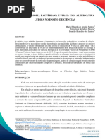 Aps o trmino das partidas o professor poder construir, utilizando os depoimentos dos alunos, o registro dos conceitos que foram utilizados na atividade. Ele poder faz-lo com perguntas do tipo: - Como vocs agruparam as cartas diante de vocs? R. s vezes os alunos percebem que nem agruparam ou analisam se fizeram algum tipo de agrupamento. - Quais os grupos de seres vivos que fazem parte do jogo? R. Os grupos: Monera (bactrias), Protista (Protozorios e alga unicelular), Fungi (filamentosos e leveduras) e Vrus. - Porque ningum perguntou se tinha DNA? O que esta molcula tem de importante que est presente em todas as cartasou grupos? R. No perguntam porque todos os microrganismos possuem DNA e, desta forma no estariam eliminando nenhuma carta. Ela fundamental para a manuteno das espcies, pois nela que est toda a informao gentica. - Se separssemos as cartas pela quantidade de termos escritos, ou nmero de estruturas, quantos grupos basicamente seriam obtidos? R. Nesse caso, os alunos vo separar o grupo dos vrus (que so acelulares) de outros dois grupos de clulas, as eucariticas e as procariticas. - Porque poucos perguntaram se tem ou no membrana plasmtica? Quantas cartas vocs eliminariam com essa pergunta? R. Com esta pergunta eles conseguiro eliminar apenas os vrus. Aps os registros dos novos conceitos, o professor poder sugerir uma nova rodada do jogo com modificao das regras, ou seja, um novo contedo poder ser includo nas perguntas. Aps o estudo das funes das organelas e estruturas contidas nas figuras das cartas o professor pode estabelecer uma nova regra para o jogo, ou seja: nesta segunda fase do jogo as perguntas no podem conter qualquer palavra escrita na carta, mas sim, a pergunta dever envolver sempre a funo da estrutura. Em aulas de laboratrio onde a microscopia ptica comum est disponvel, com utilizao de lente de imerso (para visualizao de bactrias) ou aumento de, pelo menos 40x, (para visualizao dos protozorios e fungos) os alunos podero receber lminas prontas e coradas ou constru-las a partir de material fornecido pelo professor ou coletado por eles mesmos. Comparando as imagens observadas ao microscpio com as figuras das cartas do jogo, o desafio fazer uma lista dos possveis nomes dos organismos observados ao microscpio. Esta atividade poder se tornar um emocionante exerccio de observao! Exerccio com o Quadro 1: MICROMUNDO EM DOIS TAMANHOS I. Este quadro apresenta 3 pares de imagens. Cada par formado por uma foto e uma figura do mesmo material. As legendas apresentam as condies usadas para a obteno das fotografias. Observar as duplas formadas pela figura e pela respectiva imagem microscpica: Bacterifago (Vrus de bactria), Candida albicans (Fungo), e Escherichia coli (bactria).