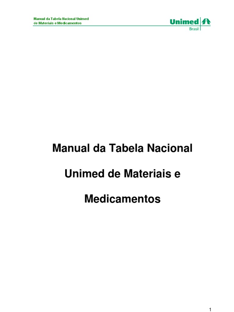 medicamentos de forma precisa, gil e atualizada, o que, consequentemente, permite a otimizao das rotinas operacionais, quer sejam as manuais e/ou informatizadas. Cabe ainda destacar que a TNUMM est tecnicamente fundamentada em recomendaes da Organizao Mundial da Sade (OMS) e de rgos reguladores - Agncia Nacional de Vigilncia Sanitria (ANVISA) e Agncia Nacional de Sade Suplementar (ANS) -, bem como na Classificao de Especialidades Mdicas do Conselho Federal de Medicina (CFM) . Tambm resultado de consulta a diferentes bibliografias na rea de gesto e padronizao de materiais e medicamentos. 2.2. Objetivos Padronizao nacional dos cdigos para materiais e medicamentos, favorecendo o Intercmbio Eletrnico entre as cooperativas do Sistema Unimed;