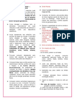 Pode-se consumir diariamente alimentos como arroz, batata e macarro, mas cuidado com o tamanho da poro e com o tipo de acompanhamento. Sempre consuma arroz com feijo (ou lentilha, soja, gro de bico) e macarro com molho vermelho e legumes (abobrinha, berinjela). Consuma 3 frutas diariamente. Legumes e verduras podem ser consumidos vontade. Evite frituras e molhos ricos em gordura, feitos com maionese e creme de leite. Evite consumo de bebidas alcolicas.