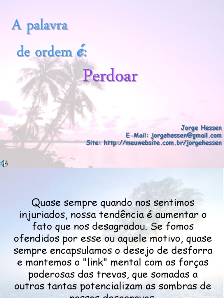 Quase sempre quando nos sentimos injuriados, nossa tendncia aumentar o fato que nos desagradou. Se fomos ofendidos por esse ou aquele motivo, quase sempre encapsulamos o desejo de desforra e mantemos o "link" mental com as foras poderosas das trevas, que somadas a outras tantas potencializam as sombras de nossos desagravos.