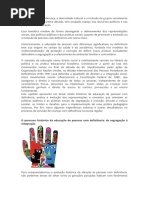 No primeiro captulo, procura-se fazer um levantamento histrico sobre a incluso social, No segundo e captulo, uma ressalta-se breve o direito conceitualizao. educao.