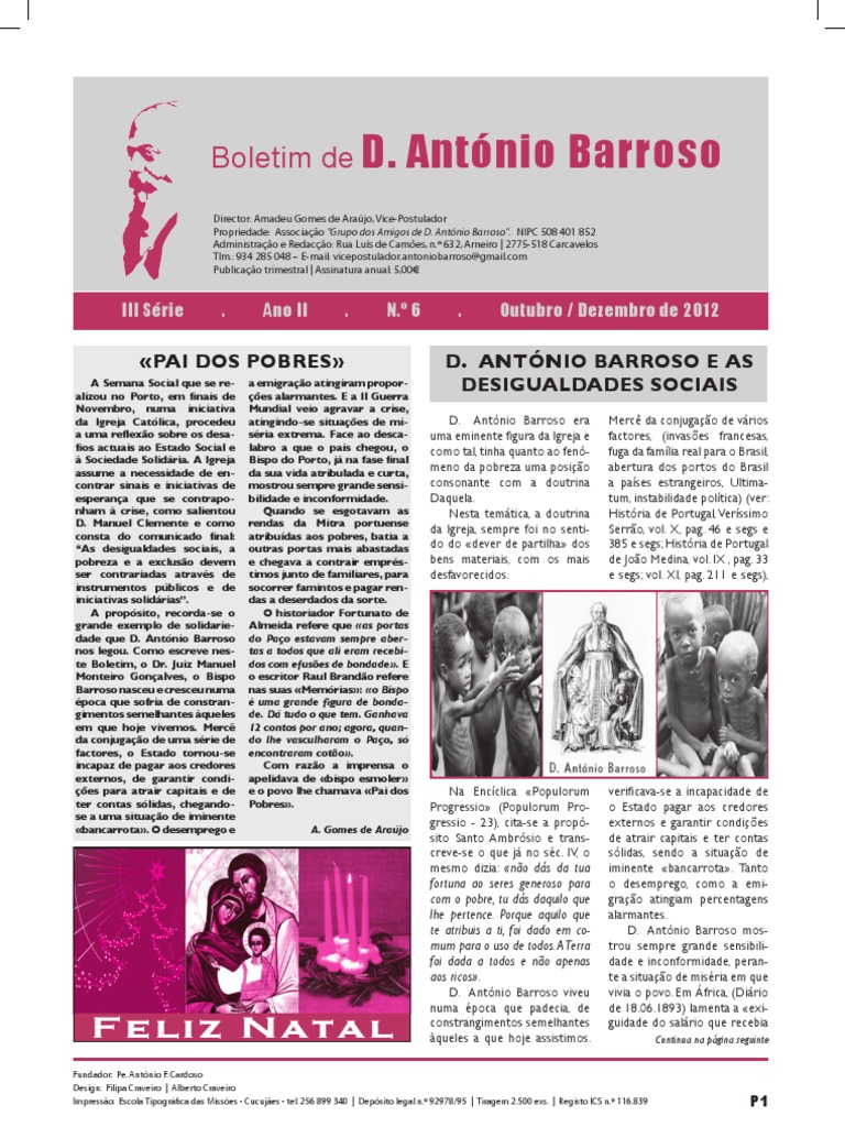 Director: Amadeu Gomes de Arajo, Vice-Postulador Propriedade: Associao "Grupo dos Amigos de D. Antnio Barroso". NIPC 508 401 852 Administrao e Redaco: Rua Lus de Cames, n. 632, Arneiro | 2775-518 Carcavelos Tlm.: 934 285 048 E-mail: vicepostulador.antoniobarroso@gmail.com Publicao trimestral | Assinatura anual: 5,00