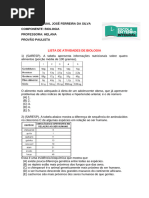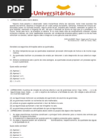 fase da lactao. Aps o perodo de amamentao, ele inativado. Em alguns humanos, entretanto, uma mutao manteve a atividade do gene LCT nos adultos, possibilitando a digesto da lactose. Essa mutao surgiu por volta de nove mil anos atrs, somente entre habitantes do norte da Europa. Pessoas sem a mutao apresentam graus variveis de intolerncia alimentar lactose, que acarreta distrbios digestivos. A figura mostra as porcentagens de populao intolerante lactose no mundo. Com base nas informaes fornecidas e nos seus conhecimentos sobre metabolismo celular e mecanismos de evoluo, voc pode afirmar que: a) a intolerncia lactose rara entre asiticos e latinos. b) todas as clulas somticas de um lactente apresentam o gene LCT ativo. c) a mutao do gene LCT pode ter sido selecionada, em algumas populaes, pelo uso do leite na alimentao de adultos. d) o gene LCT encontrado em todas as espcies animais, manifestando-se somente nos mamferos. e) todos os europeus adultos apresentam tolerncia lactose e podem consumir leite. 04- Leia com ateno o texto a seguir, adaptado de uma reportagem da revista Pesquisa FAPESP, edio 156 (fevereiro de 2009): A fim de melhor compreender a influncia das chuvas sobre o ambiente da floresta Amaznica, cientistas realizaram, no interior de uma reserva ambiental s margens do rio Tapajs, no final dos anos de 1990, um elaborado experimento a cu aberto. Selecionou-se um hectare de vegetao nativa o correspondente a um quarteiro com 100 metros de lado no qual foram simuladas secas intensas, semelhantes s causadas de tempos em tempos no leste da Amaznia pelo El Nio, o aquecimento anormal das guas superficiais do oceano Pacfico. J no primeiro ano as rvores praticamente pararam de crescer, conta um dos integrantes da equipe. Houve uma queda de 20% no ritmo de crescimento das rvores de porte mdio, com tronco de ao menos 10 centmetros de dimetro e at 15 metros de altura, enquanto outras, como o louro-amarelo (Licaria brasiliensis) e o tachivermelho (Sclerobium chrysopillum), reduziram a taxa de fotossntese, processo em que convertem a energia solar em acar, retirando gs carbnico da atmosfera. Com base no texto, possvel afirmar que: a) h um erro no nome cientfico do louro-amarelo, pois utilizou-se inicial minscula para o termo brasiliensis. b) o experimento demonstrou que uma menor disponibilidade hdrica para as plantas provocou prejuzo em seu crescimento e em sua taxa de fotossntese. c) questionvel a informao de que a fotossntese retira gs carbnico da atmosfera, pois noite as plantas realizam o processo da respirao celular. c) com uma queda de 20% ao ano no ritmo de crescimento das rvores, provvel que a floresta se transforme em savana dentro de no mximo cinco anos. e) deve haver alguma informao equivocada sobre esse experimento, pois rvores de 15 metros de altura no podem ter um tronco com menos de 10cm de dimetro.