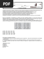 02) Nas clulas vivas em geral, sejam elas de eucariontes ou de procariontes, o mecanismo da sntese de protenas tem especial importncia. Entre as diversas molculas e estruturas que participam da formao das protenas, esto o DNA, os vrios tipos de RNA e os ribossomos, nos quais ocorre a traduo da informao e a reunio dos aminocidos, resultando na sntese de protenas propriamente dita. A figura mostra a estrutura de um RNA transportador (tRNA), responsvel pela conduo do aminocido at o ribossomo. A ala do anticdon permite a ligao com o cdon do RNA mensageiro (mRNA), possibilitando o mecanismo de traduo. A informao hereditria para formar cada protena determinada pela seqncia de bases de um determinado DNA, que transcrita numa molcula de mRNA. Todos os seres vivos de organizao celular possuem os mesmos tRNA e usam os mesmos aminocidos para formar suas protenas. O sistema de correspondncia entre DNA, RNA e aminocidos constitui o cdigo gentico, praticamente universal. Considerando esses dados e os seus conhecimentos sobre o metabolismo da clula, voc poderia afirmar que: a) cada tipo de tRNA conduz sempre o mesmo tipo de aminocido, permitindo a especificidade do processo de traduo. b) o cdigo gentico diferente para cada espcie de ser vivo, permitindo a formao de protenas diferentes. c) um determinado tRNA pode conduzir vrios aminocidos diferentes, dependendo da informao contida no mRNA. d) as protenas so transportadas para o interior dos ribossomos pela ao combinada dos tRNA citoplasmticos. e) os tRNA transportam os anticdons para o DNA, que os utiliza para formar as seqncias de bases do mRNA. 03) A lactose um carboidrato dissacardeo encontrado somente no leite dos mamferos. Sua digesto feita pela enzima intestinal lactase, cuja produo determinada pelo gene LCT. Na maioria absoluta dos mamferos, inclusive nos primatas, o gene LCT s tem atividade em filhotes na