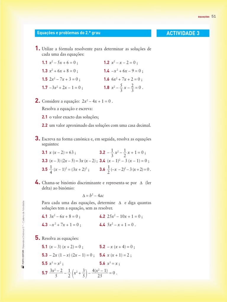 Resolva a equao e escreva: 2.1 o valor exacto das solues; 2.2 um valor aproximado das solues com uma casa decimal.