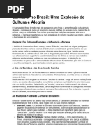 SCANNING 1. Onde podemos encontrar mais informaes sobre este assunto? 2. Quais so as razes do carnaval? 3. O carnaval das cidades nordestinas de Salvador, Porto Seguro e Recife so influenciados por qual cultura? 4. Cite as localidades e os gneros tpicos da msica do carnaval brasileiro. 5. O Carnaval do Rio atraiu um grande nmero de visitantes no ano de 2012. Aps uma pesquisa sobre os estilos musicais da regio nordeste, nomeie as imagens: Frevo / Maracatu / Samba-reggae / Ax