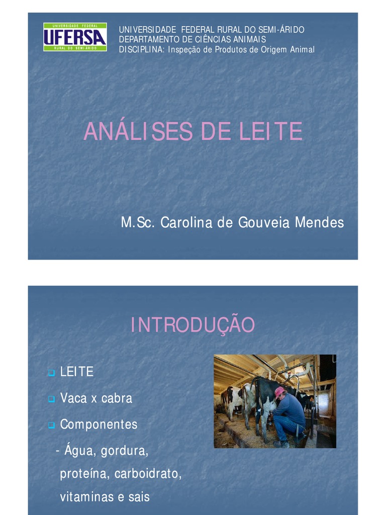 LEITE Vaca x cabra Componentes - gua, gordura, protena, carboidrato, protena carboidrato vitaminas e sais