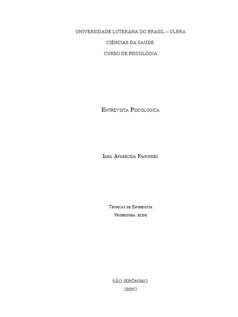 SILVEIRA,Maria Aparecida da. Técnicas de Entrevista Psicológica - Cadernos Universitários nº 145, Canoas: Ed. ULBRA, 2003.